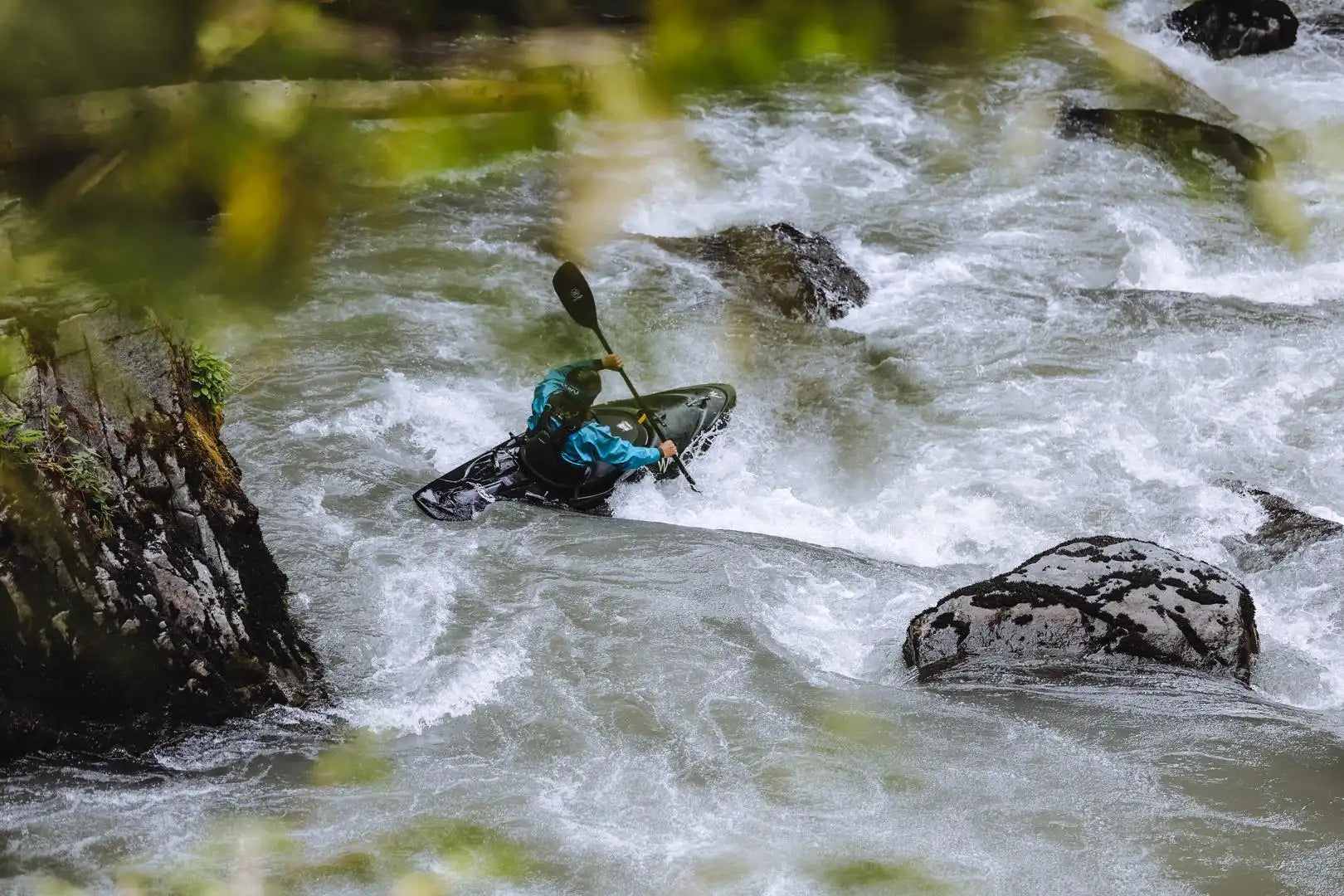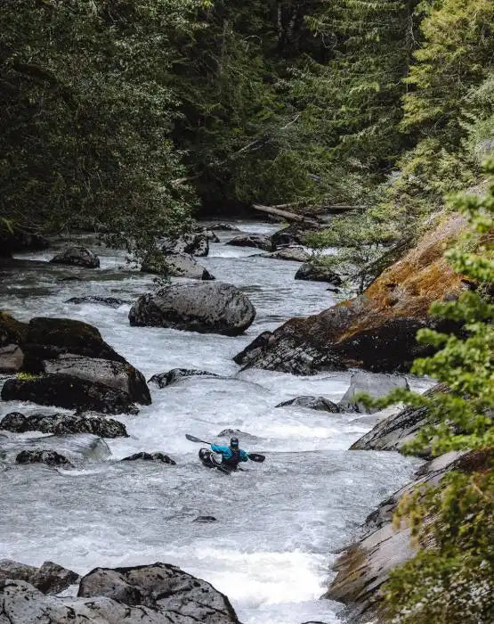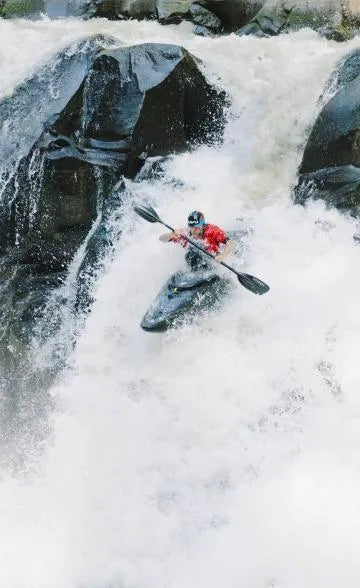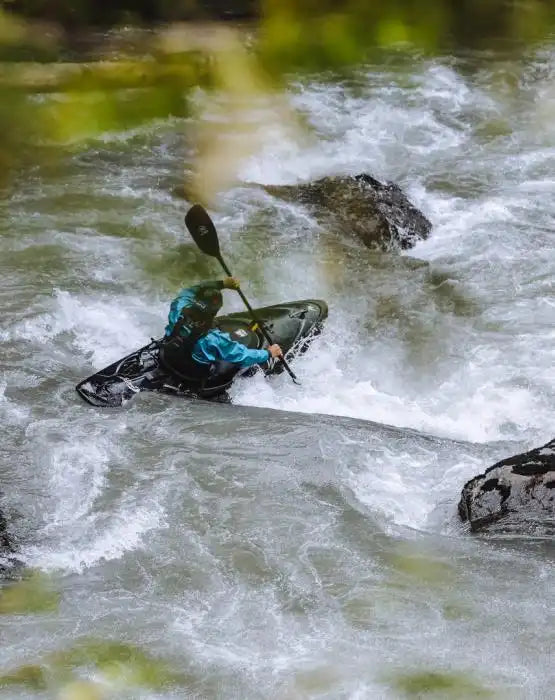 Swiftly gliding past jutting rocks and skipping through whorls of whitewater. Paddling to an improvised rhythm, running towards the rising roar in the near distance.